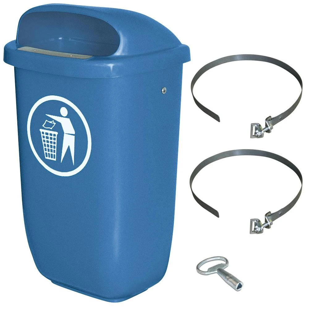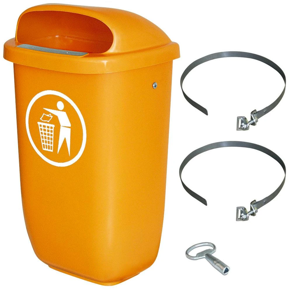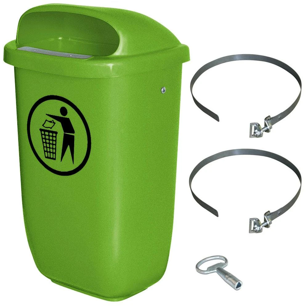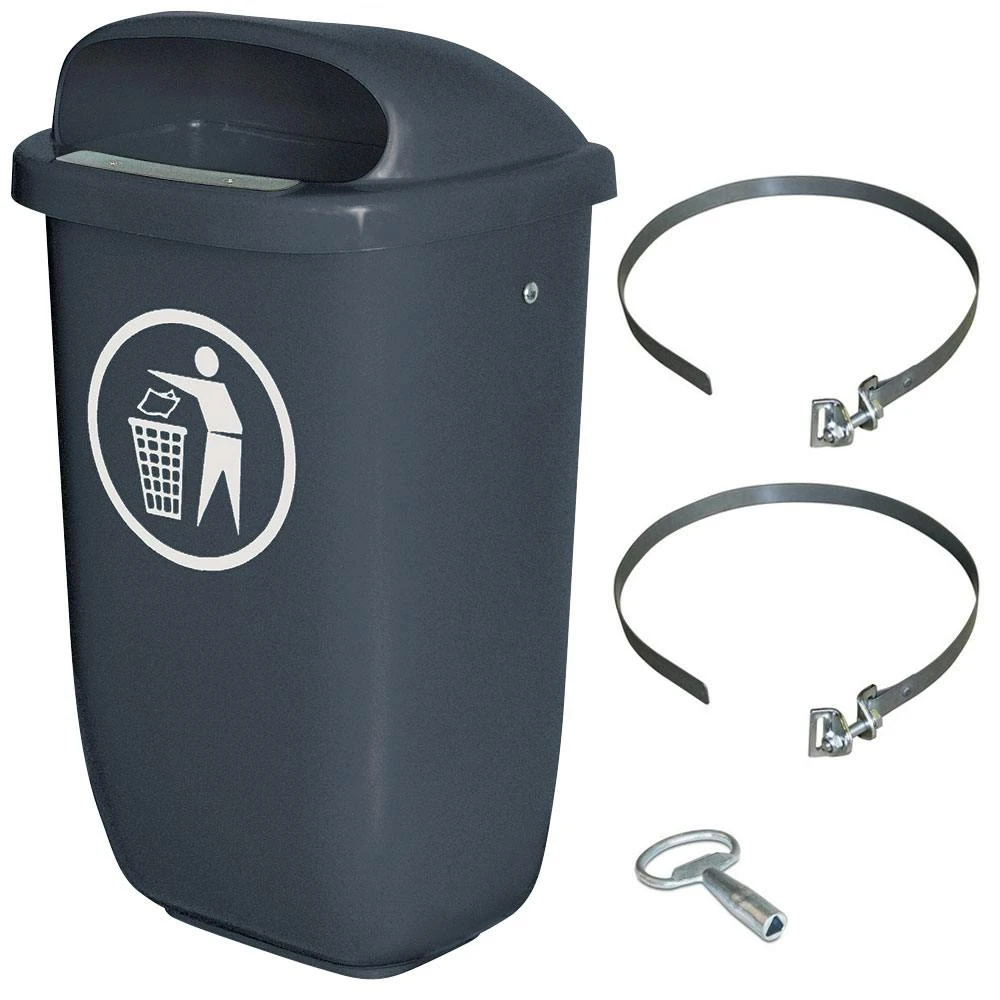 50 Liter Abfallbehälter im Komplettset mit Schellenband zur Pfahlbefestigung