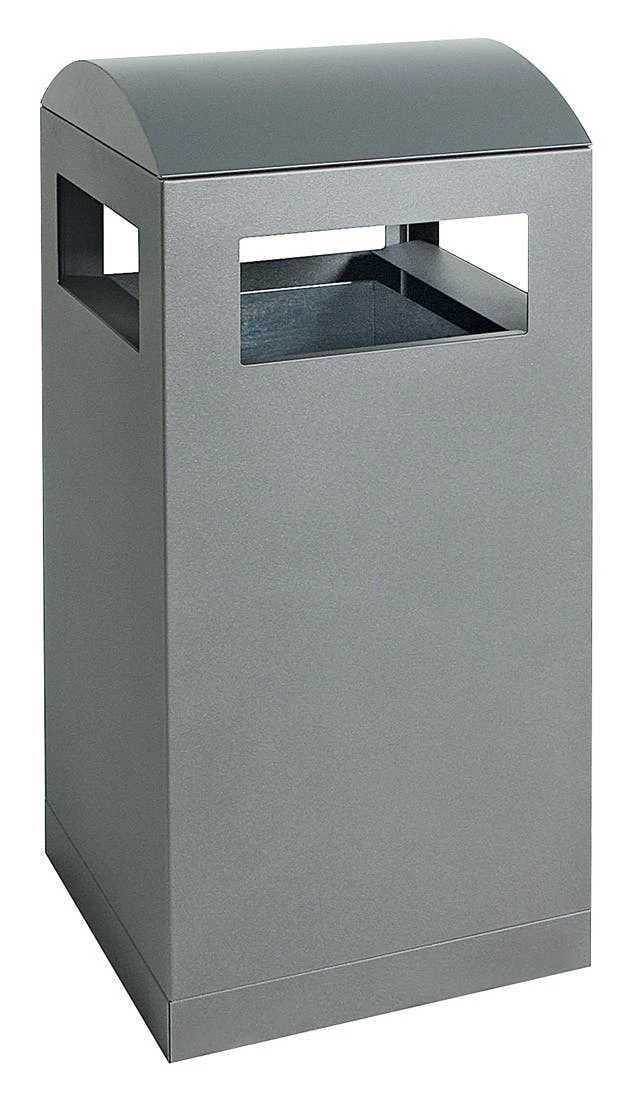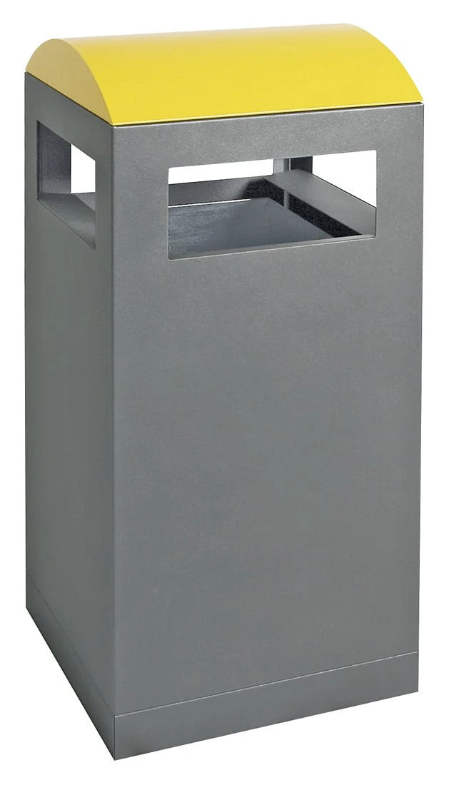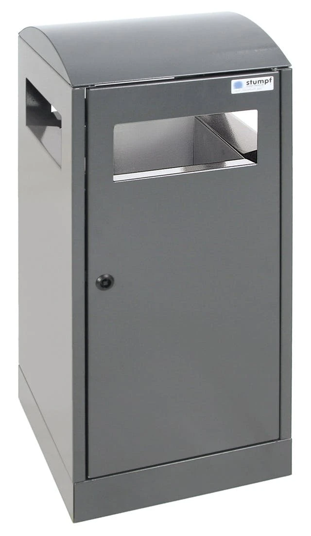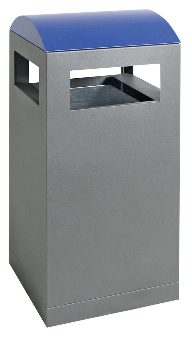 Sammler für die Außenaufstellung mit farbigem Kopfelement. Aus vollständig verzinktem Qualitätsstahlblech gefertigt und hochwertig strukturiert pulverbeschichtet (licht- und wetterstabile Beschichtung). Im Behälterinnern sorgt ein Innenbehälter aus ebenfalls verzinktem Stahlblech für optimale Abfallaufnahme. Das Fassungsvermögen beträgt 90 Liter. Der Innenbehälter wird durch eine frontseitig eingelassene und per Vierkantschloss verschließbare Flügeltüre entnommen (Vierkantschlüssel werden mitgeliefert). Abfalleinwurf von allen Seiten möglich. Frontseitig sorgen 2 Stellfüße für den Ausgleich bei Unebenheiten. Mit den serienmäßig mitgelieferten Befestigungsprofilen kann der Behälter im Boden verschraubt werden. Der Artikel wird vollständig in Deutschland hergestellt und wird in einer TÜV-zertifizierten Produktionsstätte hergestellt. Der Hersteller gewährt eine Garantie von 5 Jahren. Farbgebung Korpus: anthrazitgrau RAL 7016, Farbgebung Kopfelement: enzianblau RAL 5010