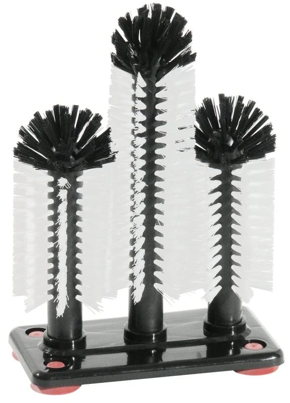 Gläserspülbürsten für Weizengläser, schwarze und weiße Borsten aus Polypropylen, auf stabiler schwarzer Kunststoffplatte 19 x 10 cm, mit 4 Saugfüßen
