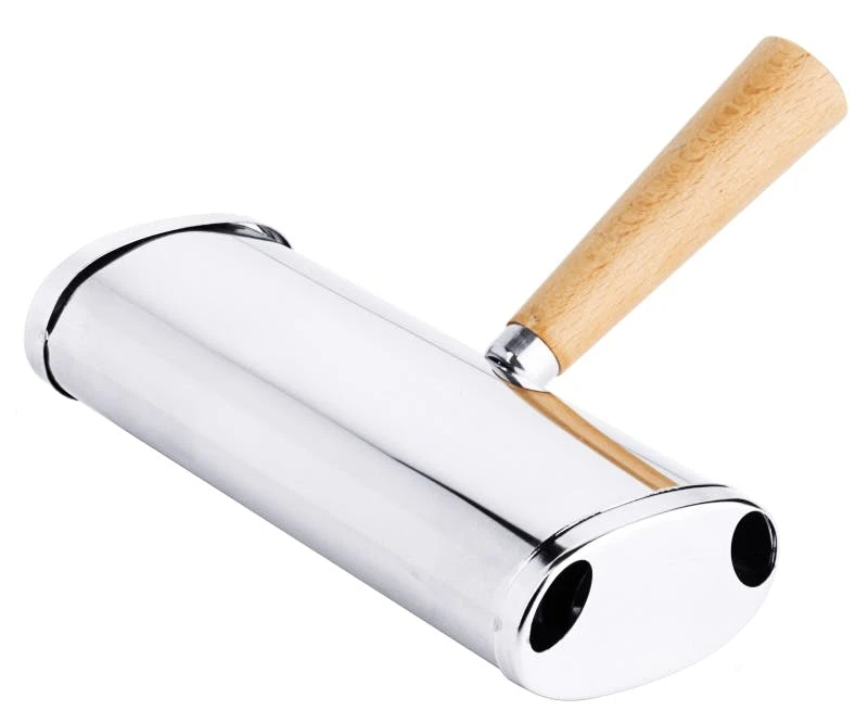 Tischbürste, aus Edelstahl 18/10, hochglänzend, mit lackiertem Holzgriff, zwei Bürstenwalzen, zum Kehren von Krümeln