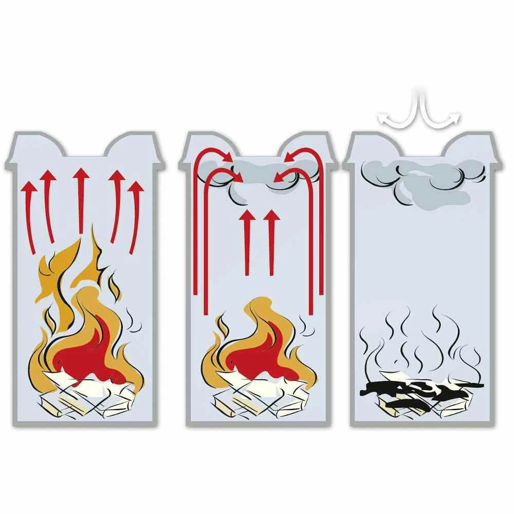 - besondere Deckelkonstruktion sorgt für ein Flammenverlöschen des Feuers im Behälter