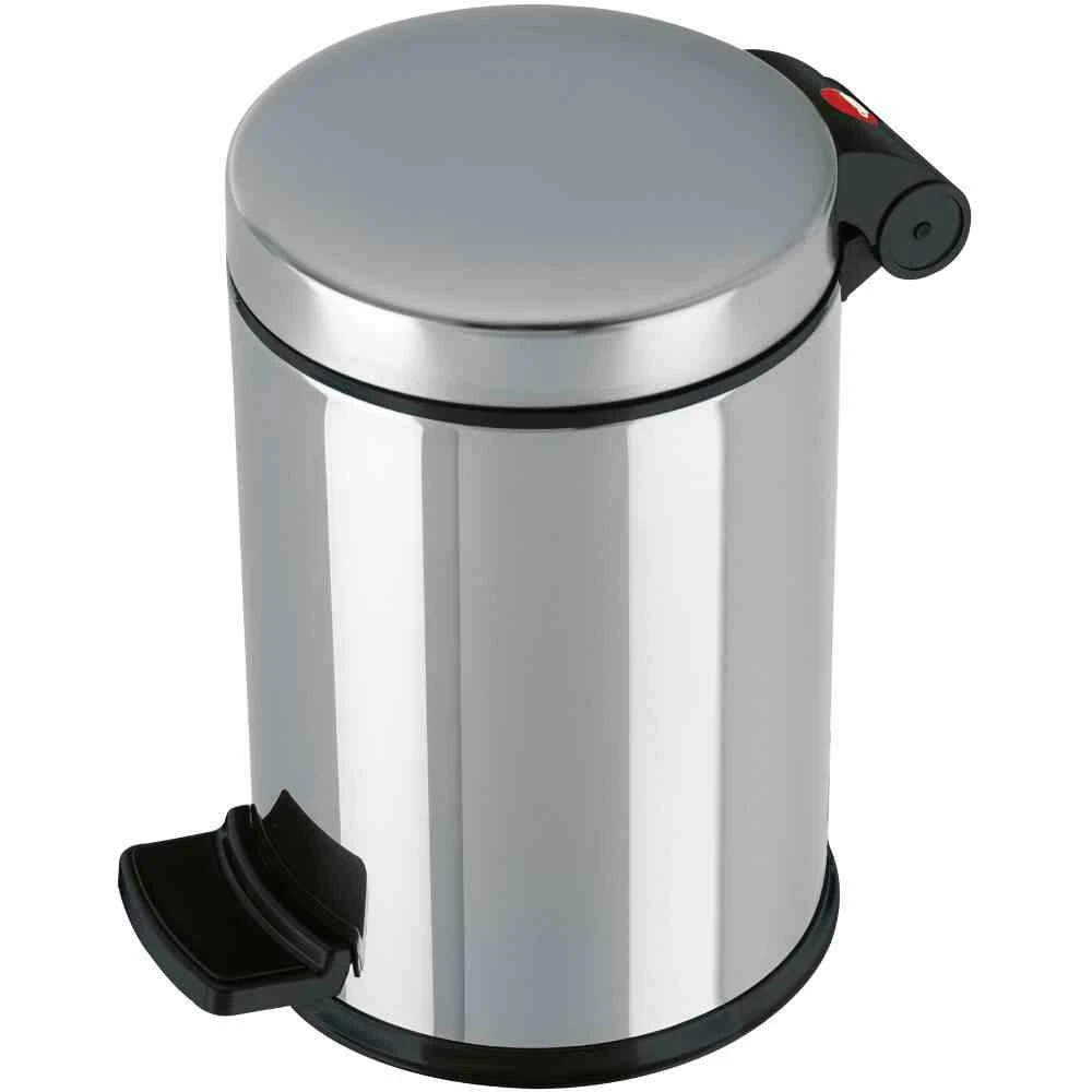 - Tret-Mülleimer mit ergonomischer Höhe und Kunststoff-Inneneimer Gehäuse und flacher Deckel aus Edelstahl oder korrosionsfest beschichtetem Stahlblech