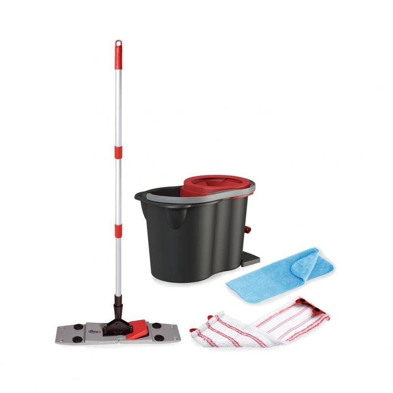Vollflächiger hellgrauer Kunststoff-Mopphalter zum ergonomischen Arbeiten. Besonders stabile Ausführung mit kippsicherem Drehgelenk, Edelstahlschrauben. Ideale Passform für alle handelsüblichen Moppbezüge