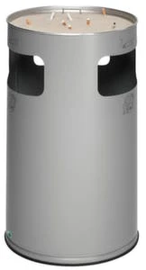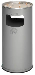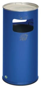 Kombiascher, Höhe x Durchmesser 700 x 320 mm, Korpus aus Stahl verzinkt mit Pulverbeschichtung in blau, mit herausnehmbarem Kippensieb, Aschereinsatz aus Aluminium, mit 2 Einwurföffnung(en), ohne Schutzdach, Lieferung inklusive Piktogramm-Aufkleber.