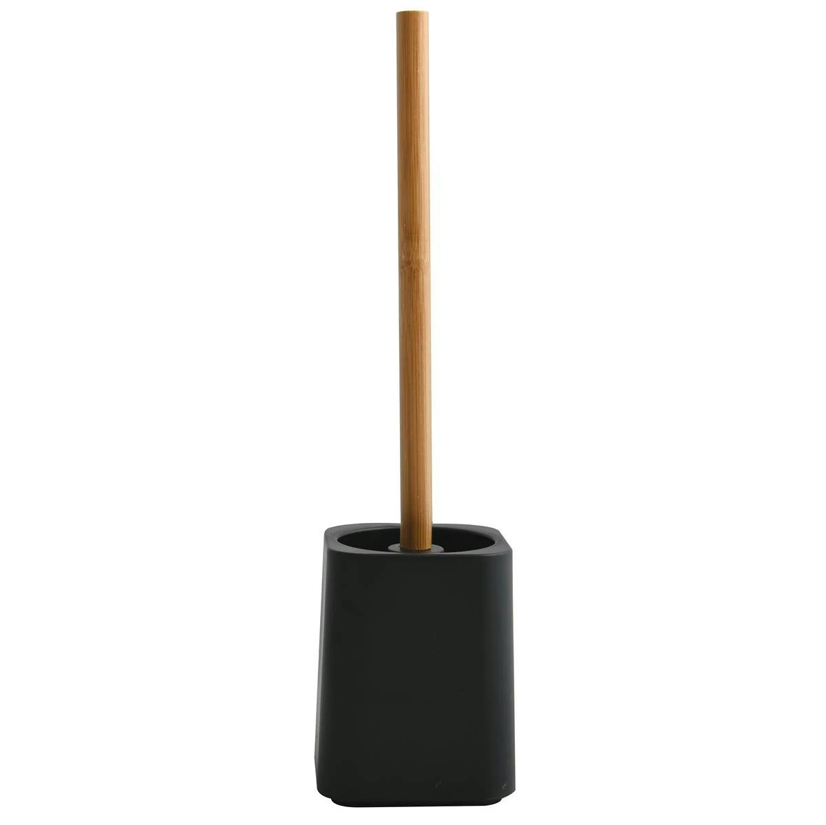 MSV® WC-Bürste „Kamla“, Toilettenbürste Garnitur, Ø10 x 38 cm, aus hochwertigem Kunstoff mit Bambus, matt schwarz
