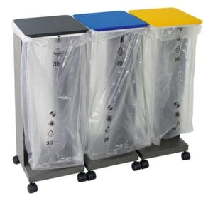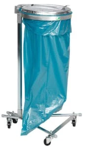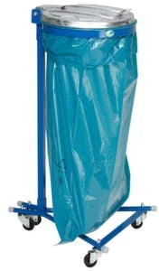 Müllsackständer, für 2500-Liter-Säcke, Höhe x Breite x Tiefe 1170 – 2020 x 1100 x 640 – 1080 mm, Fixiervorrichtung zur Sackbefestigung, Gestell aus Stahl mit Pulverbeschichtung in RAL5012 Lichtblau, Unterbau 4 Rollen.