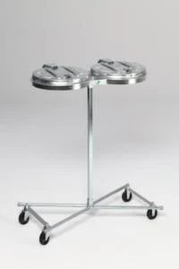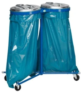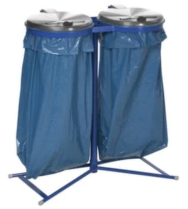 Müllsackständer, für 2 x 120-Liter-Säcke, Höhe x Breite x Tiefe 980 x 850 x 480 mm, Klappdeckel Öffnung manuell, Klemmring zur Sackbefestigung, Deckel aus Stahl verzinkt.