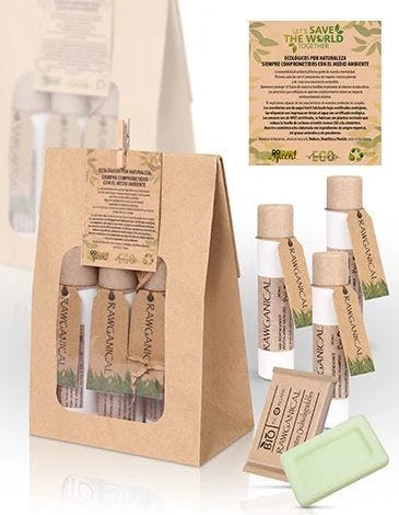 Musterset 100% Nature bestehend aus Duschgel, Shampoo und Body Lotion und einer Handseife.