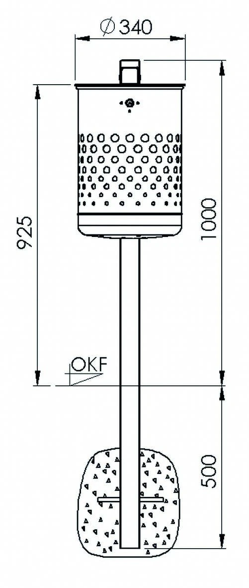 mit Deckelscheibe, Gesamtmaße ca. H 1.500 x Ø 380 x T 460 mmVersion mit Quadratrohrpfosten (60x60x1.500 mm) z. EinbetonierenBehälterkorpus gelocht,Lieferung inkl. Quadratrohrpfosten und Metall-Dreikantschlüssel DK8verz. Einsatzbehälter optional (unsere Mod.-Nr. 7039-01)feuerverzinkt nach DIN EN ISO 1461 sowie zusätzlichpulverbeschichtet, Made in Germany