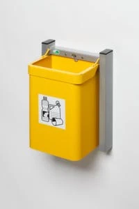 Abfallbehälter, Inhalt 50 l, Höhe x Durchmesser 740 x 350 mm, mit Push-Klappe, Innenbehälter aus Stahl verzinkt, Kopfteil abnehmbar, einfache Entleerung über Kopfteil, Korpus aus Stahl mit Pulverbeschichtung in silber, Deckel aus Stahl mit Pulverbeschichtung in silber, Unterbau Kunststoff-Bodenring.