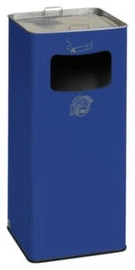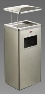 Alu-Kombiascher, Höhe x Breite x Tiefe 950 x 350 x 380 mm, Abfallbehälter Inhalt 38 l, Korpus aus Aluminium, mit herausnehmbarem Kippensieb, Aschereinsatz aus Edelstahl, mit 3 Einwurföffnung(en), mit Schutzdach, Schutzdach in RAL7021 Schwarzgrau, verschließbar mit Vierkantschloss, Bodenbereich feuerverzinkt.