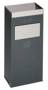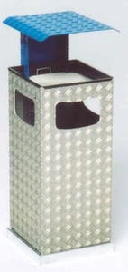 Alu-Kombiascher, Höhe x Breite x Tiefe 950 x 350 x 380 mm, Abfallbehälter Inhalt 38 l, Korpus aus Aluminium, mit herausnehmbarem Kippensieb, Aschereinsatz aus Edelstahl, mit 3 Einwurföffnung(en), mit Schutzdach, Schutzdach in RAL6005 Moosgrün, verschließbar mit Vierkantschloss, Bodenbereich feuerverzinkt.
