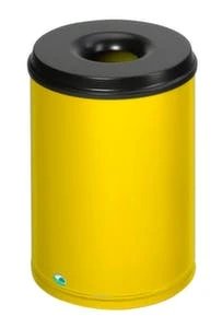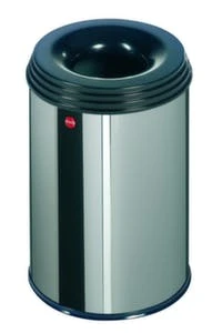 Edelstahl-Papierkorb, selbstlöschend, Inhalt 30 l, Höhe x Durchmesser 390 x 375 mm, mit Löschkopf, Kopfteil aus Stahl mit Pulverbeschichtung in schwarz, Korpus aus Edelstahl poliert.