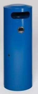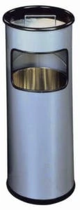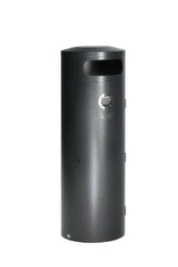 Kombiascher, Höhe x Durchmesser 1245 x 420 mm, Abfallbehälter Inhalt 90 l, Korpus aus Stahl mit Pulverbeschichtung in silber, Aschereinsatz Inhalt 4,5 l, ohne Schutzdach, verschließbar mit Doppelbartschloss, einfache Entleerung über Tür.
