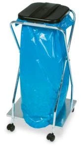 Müllsackständer, für 120-Liter-Säcke, Höhe x Breite x Tiefe 1000 x 490 x 490 mm, Klappdeckel Öffnung mit Fußpedal, Klemmring zur Sackbefestigung, Gestell aus Stahl mit Pulverbeschichtung in RAL5010 Enzianblau, Deckel aus Kunststoff in schwarz.