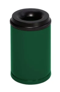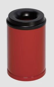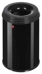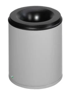 Papierkorb, selbstlöschend, Inhalt 30 l, Höhe x Durchmesser 390 x 375 mm, mit Löschkopf, Kopfteil aus Stahl verzinkt mit Pulverbeschichtung in schwarz, Korpus aus Stahl verzinkt mit Pulverbeschichtung in RAL9005 Tiefschwarz.
