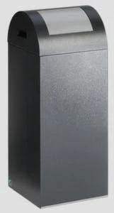 Wertstoffsammler, selbstlöschend, Inhalt 1 x 60 l, Höhe x Breite x Tiefe 800 x 320 x 320 mm, mit Einwurfklappe, selbstschließend, Kopfteil abnehmbar, Klemmring zur Sackbefestigung, einfache Entleerung über Kopfteil, Korpus aus Stahl mit Pulverbeschichtung in antiksilber, Deckel aus Stahl mit Pulverbeschichtung in RAL5010 Enzianblau, Unterbau umlaufender Kantenschutz, TÜV geprüft.