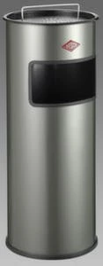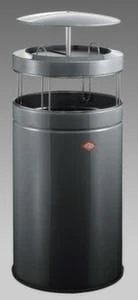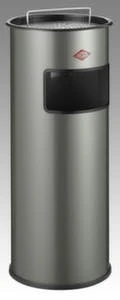 Kombiascher, Höhe x Durchmesser 1031 x 435 mm, Abfallbehälter Inhalt 120 l, Korpus aus Stahl mit Pulverbeschichtung in neusilber, mit herausnehmbarem Kippensieb, Kopfteil aus Stahl in neusilber, mit 1 Einwurföffnung(en), mit Schutzdach, Schutzdach in Korpusfarbe, Fixiervorrichtung zur Sackbefestigung, einfache Entleerung über Kopfteil, Bodenbereich mit Kantenschutz.